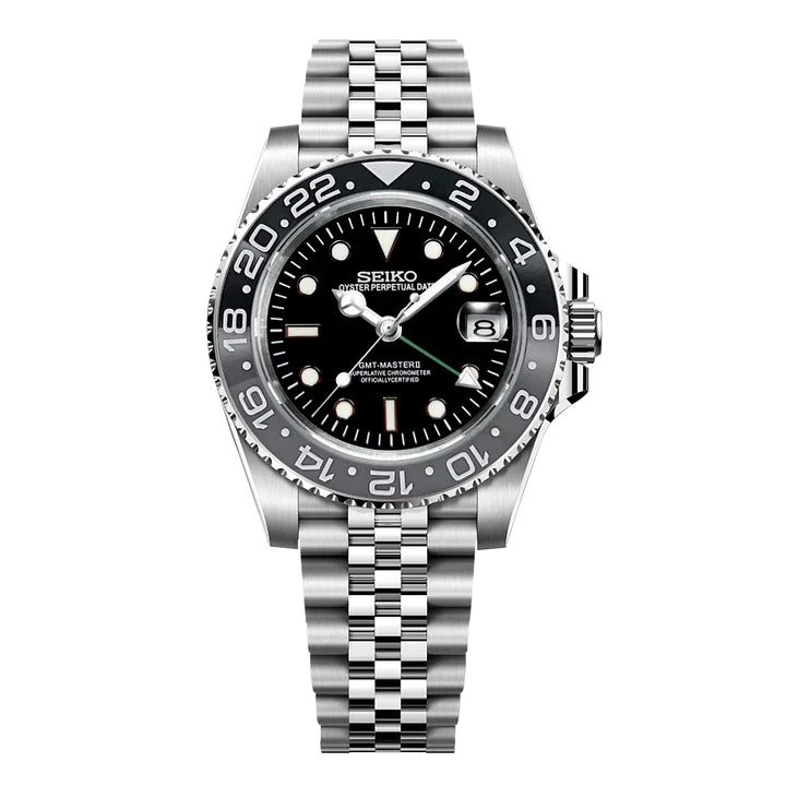 Inspirado en el emblemático estilo GMT y impulsado por el reconocido movimiento automático Seiko NH34, presentamos el Seiko Mod GMT: un reloj de 40 mm que eleva el estándar al combinar precisión, sofisticación y un valor excepcional.