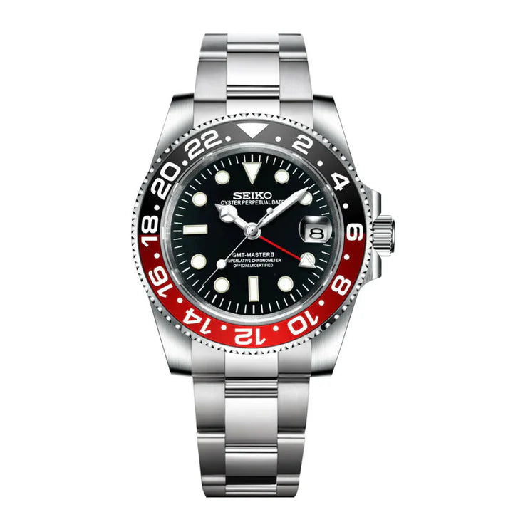 Inspirado en el emblemático estilo GMT y impulsado por el reconocido movimiento automático Seiko NH34, presentamos el Seiko Mod GMT: un reloj de 40 mm que eleva el estándar al combinar precisión, sofisticación y un valor excepcional.