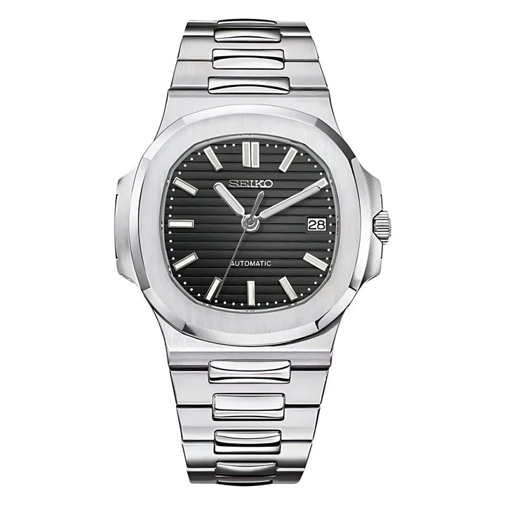Tomando como base el emblemático diseño del Nautilus y contando con el reconocido movimiento automático Seiko NH35, presentamos el Seiko Mod Nautilus. Este reloj de 41 mm destaca por su gran calidad y logra unir de manera impecable un nivel de excelencia sobresaliente con una accesibilidad notable.