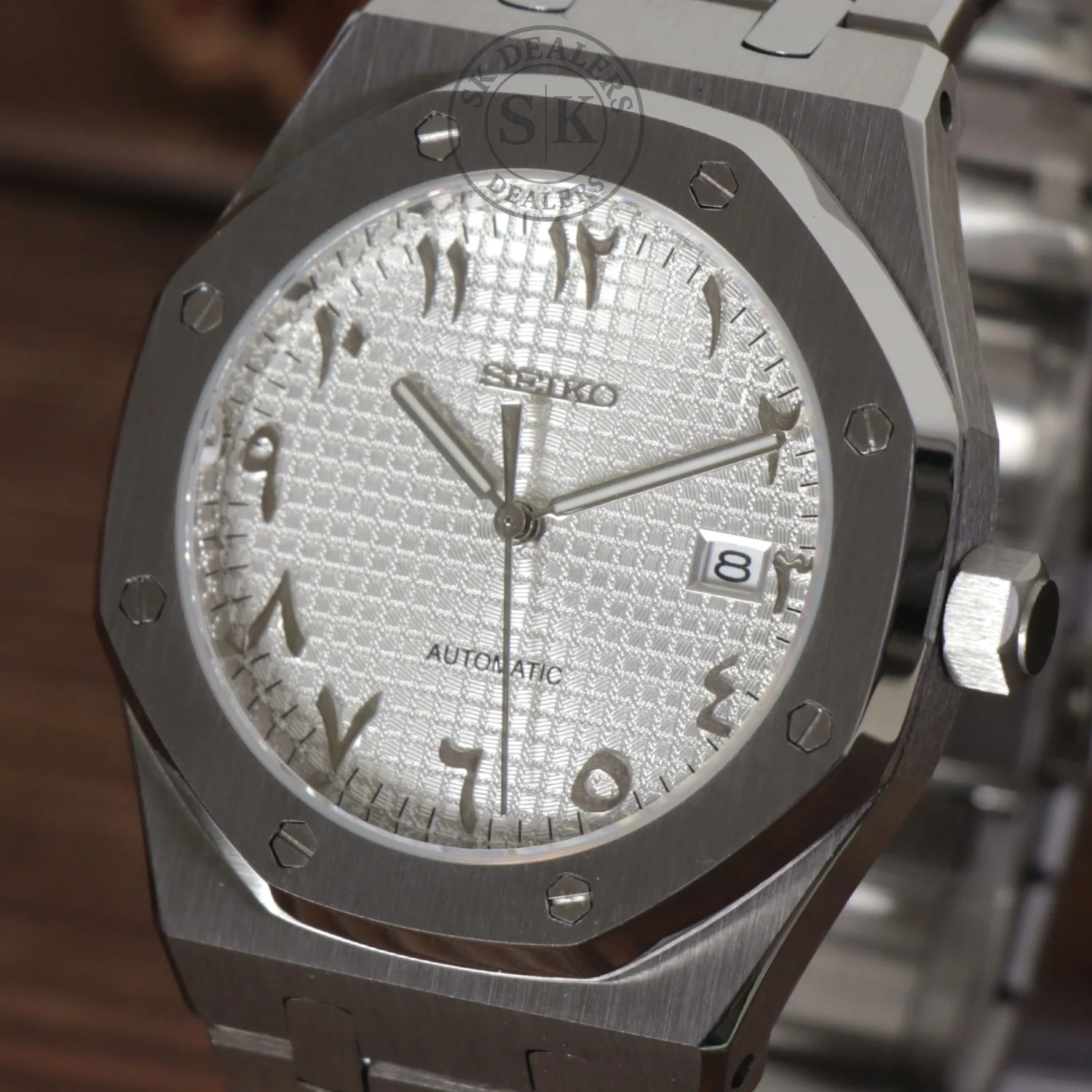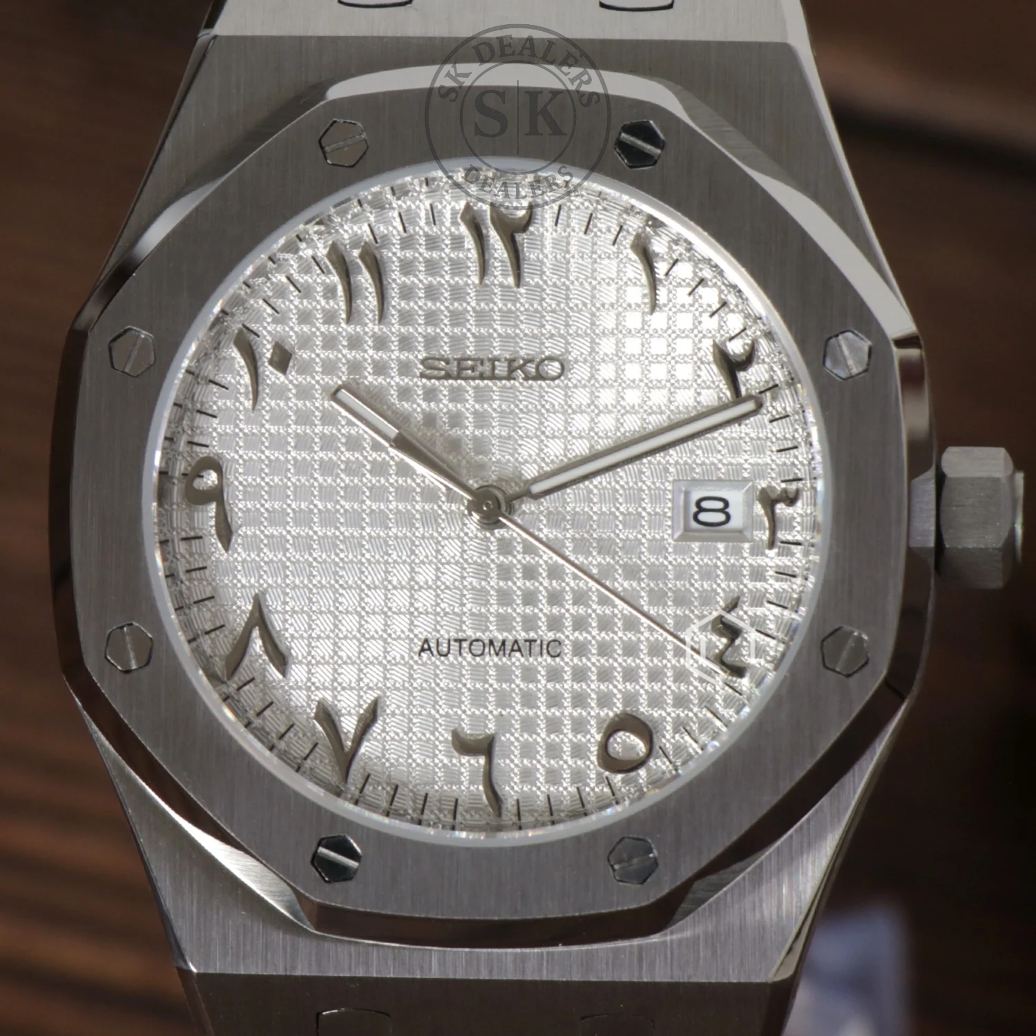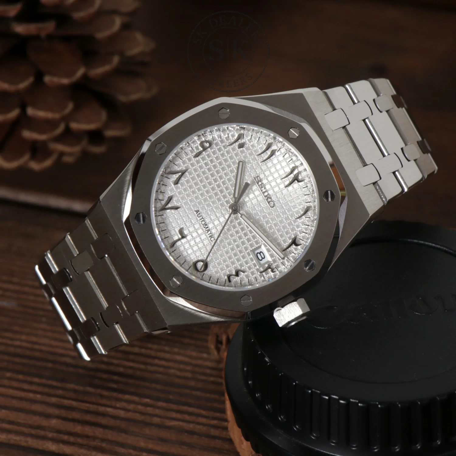 Tomando como referencia el emblemático diseño del Royal Oak y contando con el reconocido movimiento automático Seiko NH35, presentamos el Seiko Mod Royal Oak. Se trata de un reloj de 41 mm de gran calidad que logra unir de manera impecable un alto nivel de excelencia con una accesibilidad destacada.