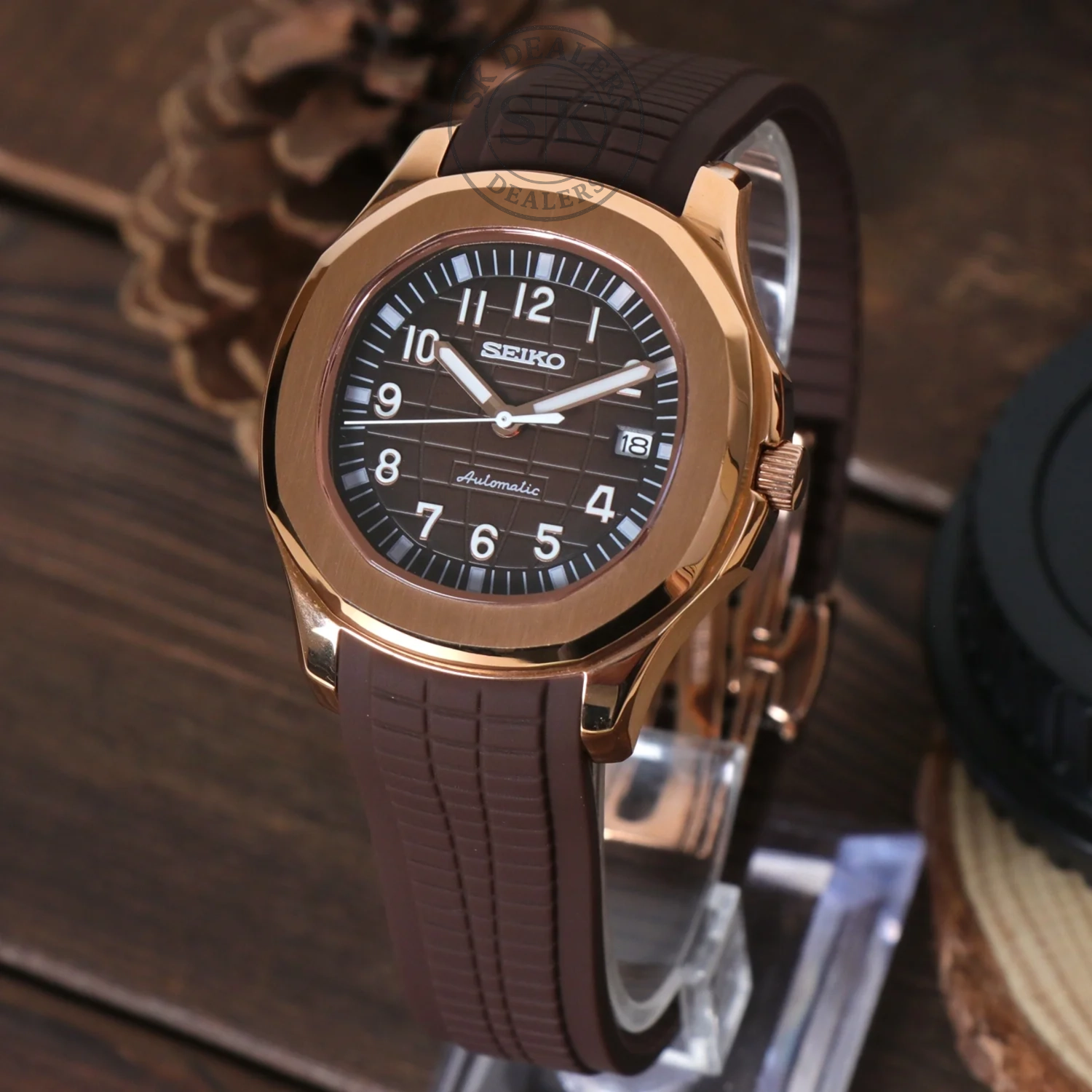 Basado en el reconocido diseño del Aquanaut y utilizando el prestigioso movimiento automático Seiko NH35, presentamos el Seiko Mod Aquanaut. Es un reloj de 41 mm de gran nivel que logra fusionar de manera impecable una excelente calidad con una accesibilidad destacada.