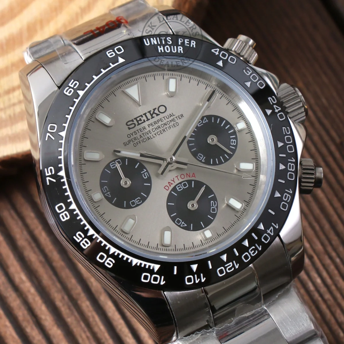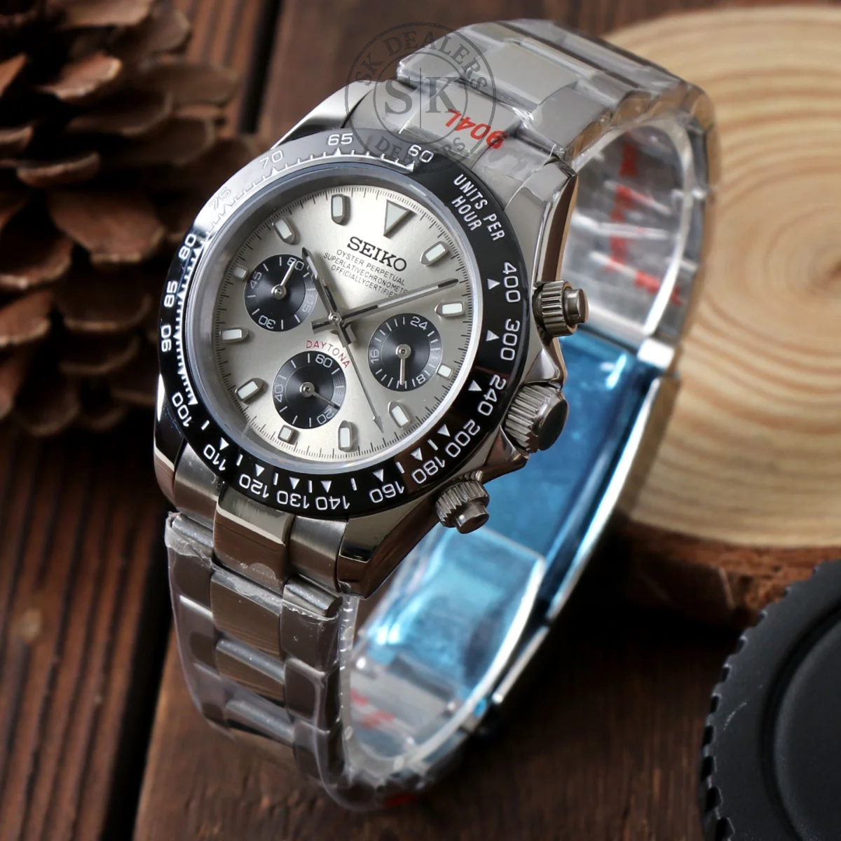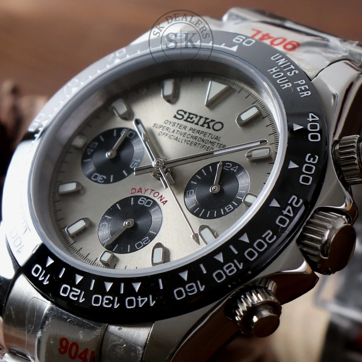Inspirado en el legendario diseño del Daytona y alimentado por el reconocido calibre híbrido Seiko VK63, te presentamos el Seiko Mod Daytona. Un reloj de 40 mm de gran calidad que logra unir de manera impecable elegancia y accesibilidad.