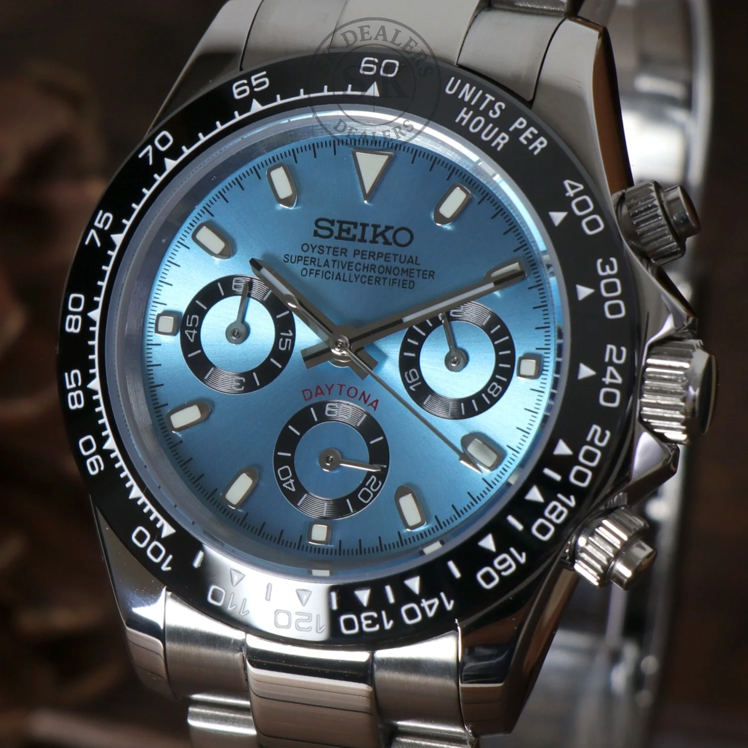 Inspirado en el legendario diseño del Daytona y alimentado por el reconocido calibre híbrido Seiko VK63, te presentamos el Seiko Mod Daytona. Un reloj de 40 mm de gran calidad que logra unir de manera impecable elegancia y accesibilidad.