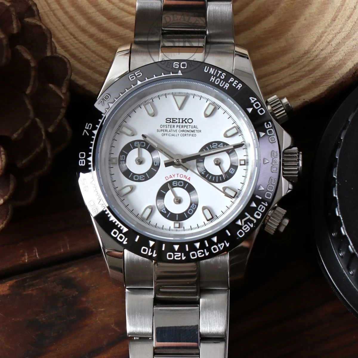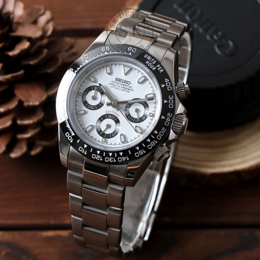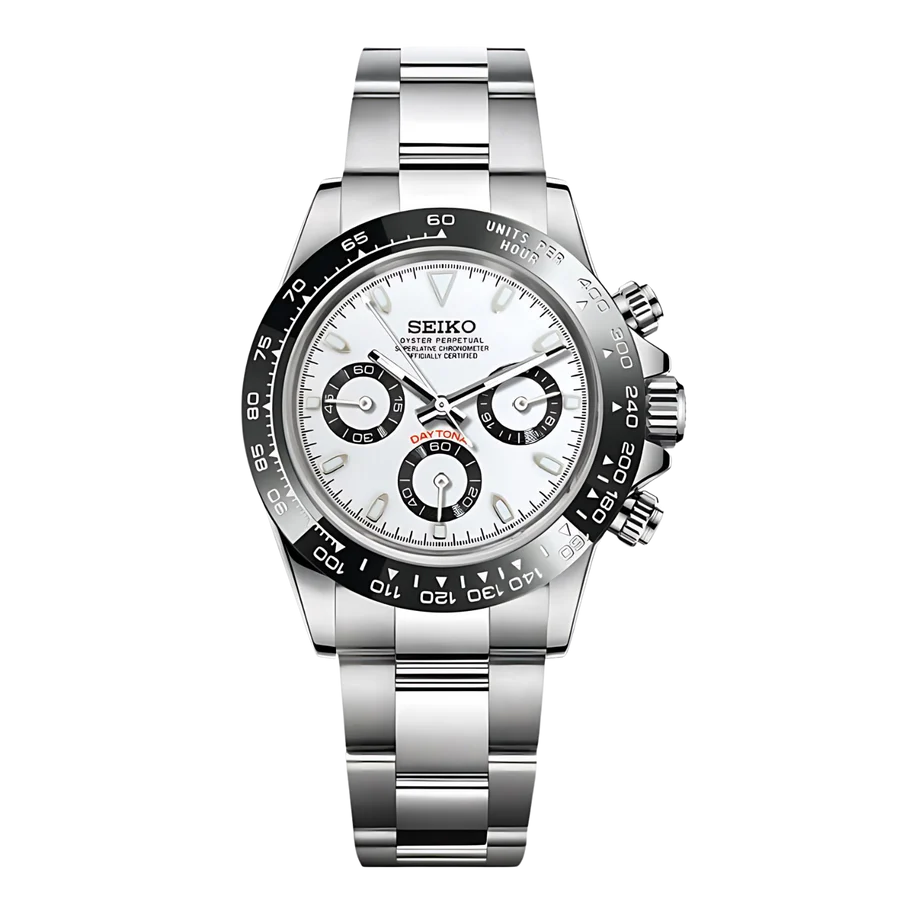 Inspirado en el legendario diseño del Daytona y alimentado por el reconocido calibre híbrido Seiko VK63, te presentamos el Seiko Mod Daytona. Un reloj de 40 mm de gran calidad que logra unir de manera impecable elegancia y accesibilidad.